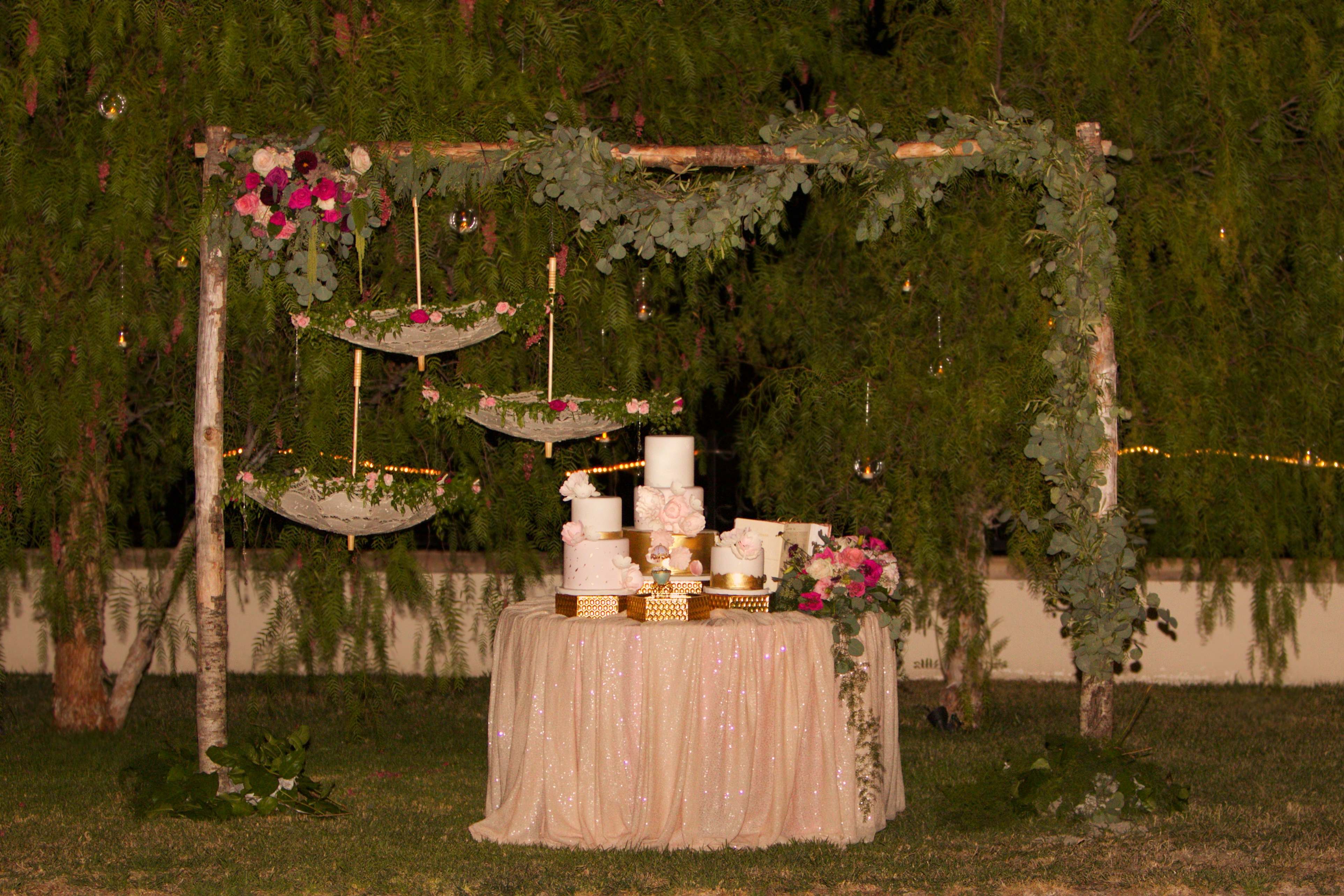 Sarah at Crescenta Valley Flowers was a pleasure to work with. She was the first florist I went to to get a quote and idea for my engagement party, and she made me feel so comfortable that I did not look elsewhere. I had an idea to use this gold screen as a backdrop and she totally loved it and transformed my idea to reality. She took her time when meeting with me, was understanding and kind, worked within my budget, answered emails, and really tried to understand what mood I wanted to set for my engagement party, and what colors and flowers I liked. I decided to trust she would do a good job and leave it all in her hands, and she created the most beautiful, elegant and romantic arrangements for my cake and escort card tables.All of my arrangements were fresh, put together and smelled amazing! I would recommend them to anyone and everyone and trust them for any event to deliver their best work possible. Can't wait to work with them again for a future event. I'm so glad I found them!